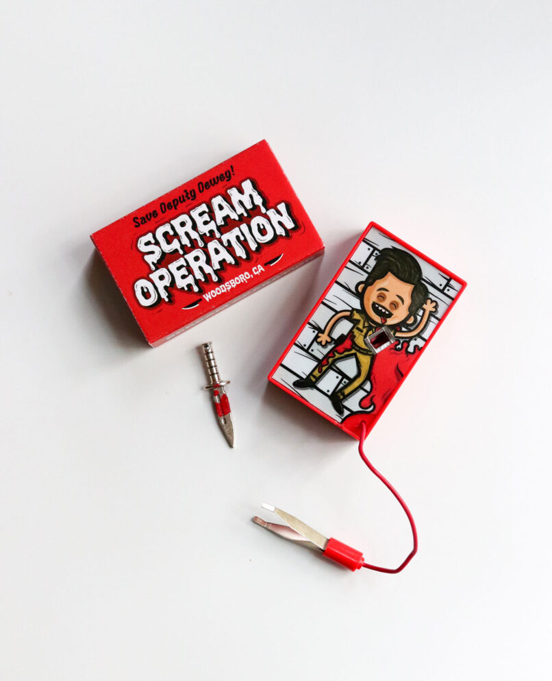 Have you seen those mini versions of classic games some toy stores sell? Like pocket versions of games? Well, I kept seeing a tiny version of Operation and thought it would be a fun challenge to make my own game out of it, but instead of using little tweezers to pull out little plastic bones, I thought pulling out a mini knife would be both deranged and funny.